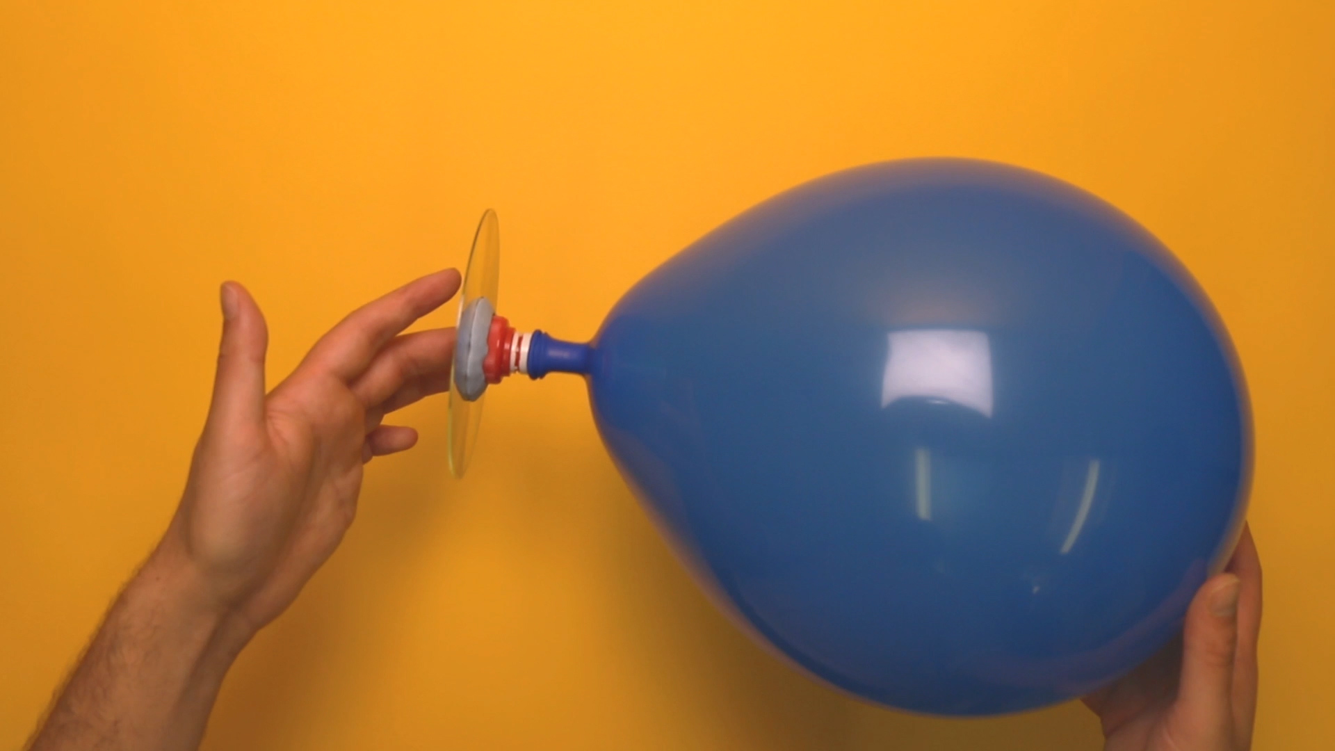 Inflate the balloon by blowing through the hole in the CD. Close the sports cap to keep the air in!