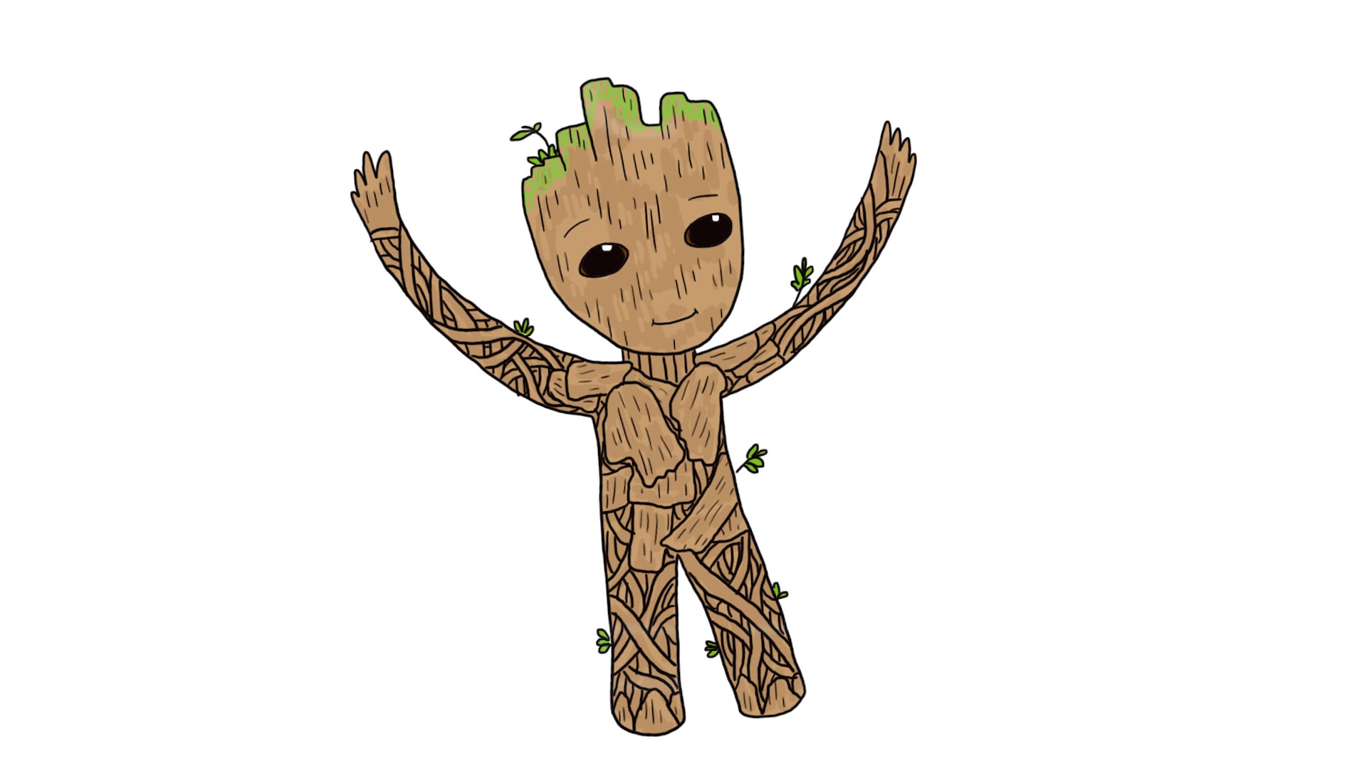 Make your Baby Groot even better and add a few quick lines for texture